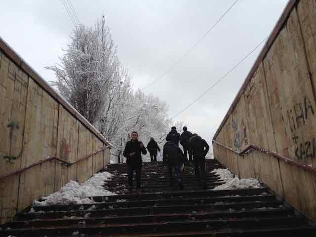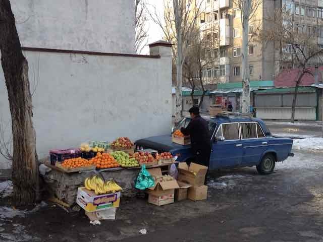 Many were selling produce on the streets or second hand goods such as the gentleman in the fur hat below, who I met in early 2013, selling knives on the pavement next to main road. I'm not sure if he was Russian but according to Wikipedia, over 600,000 residents of the North Caucasus region were deported to the Kirghiz and Kazakh SSRs, in 1944 alone, so perhaps he descended from them?